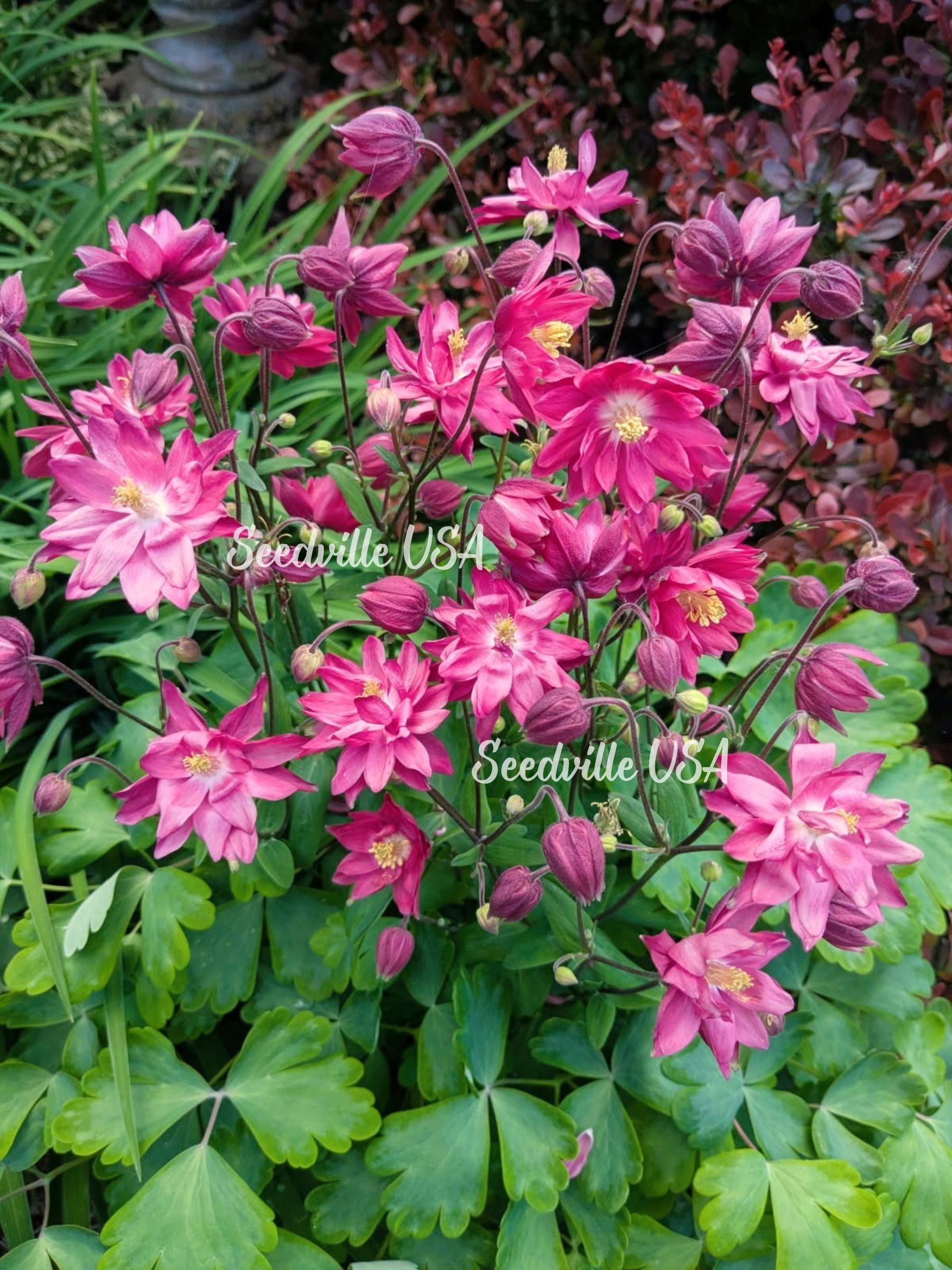 50 Clementine RED DOUBLE COLUMBINE Aquilegia Vulgaris Flower Seeds