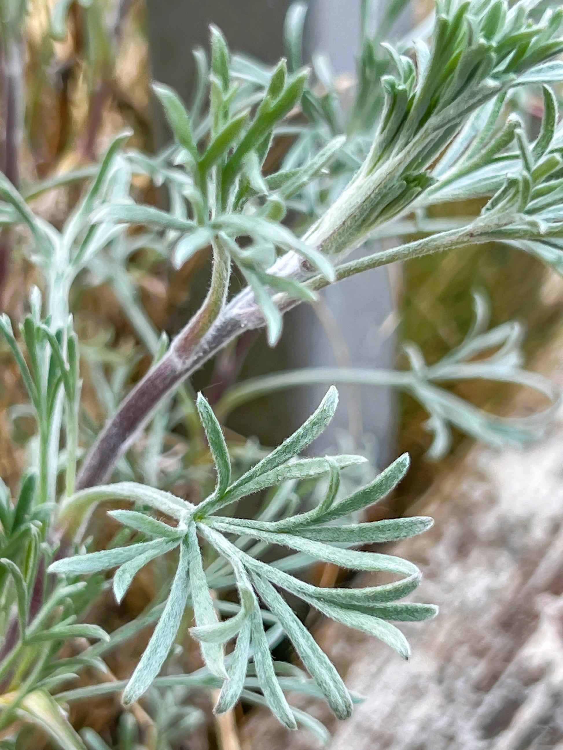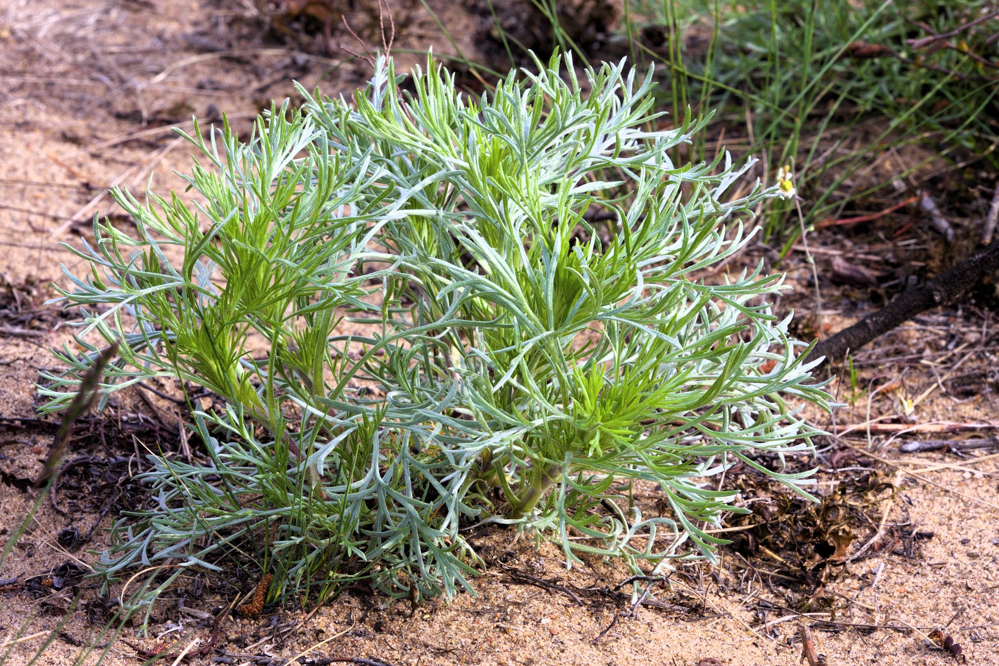 OTHER: Beach Wormwood has a huge list of traditional medicinal uses & is also quite lovely. The plants have fancy feathery foliage that is a silvery white color on red stems that add great contrast. Beach Wormwood does like dry sandy soil & sun. They are able to grow in coastal conditions such as salt spray, or the rocky sandy soil of deserts. Grow them in a rock garden or anywhere with sun & well drained soil. The flowers will attract bees & butterflies too!