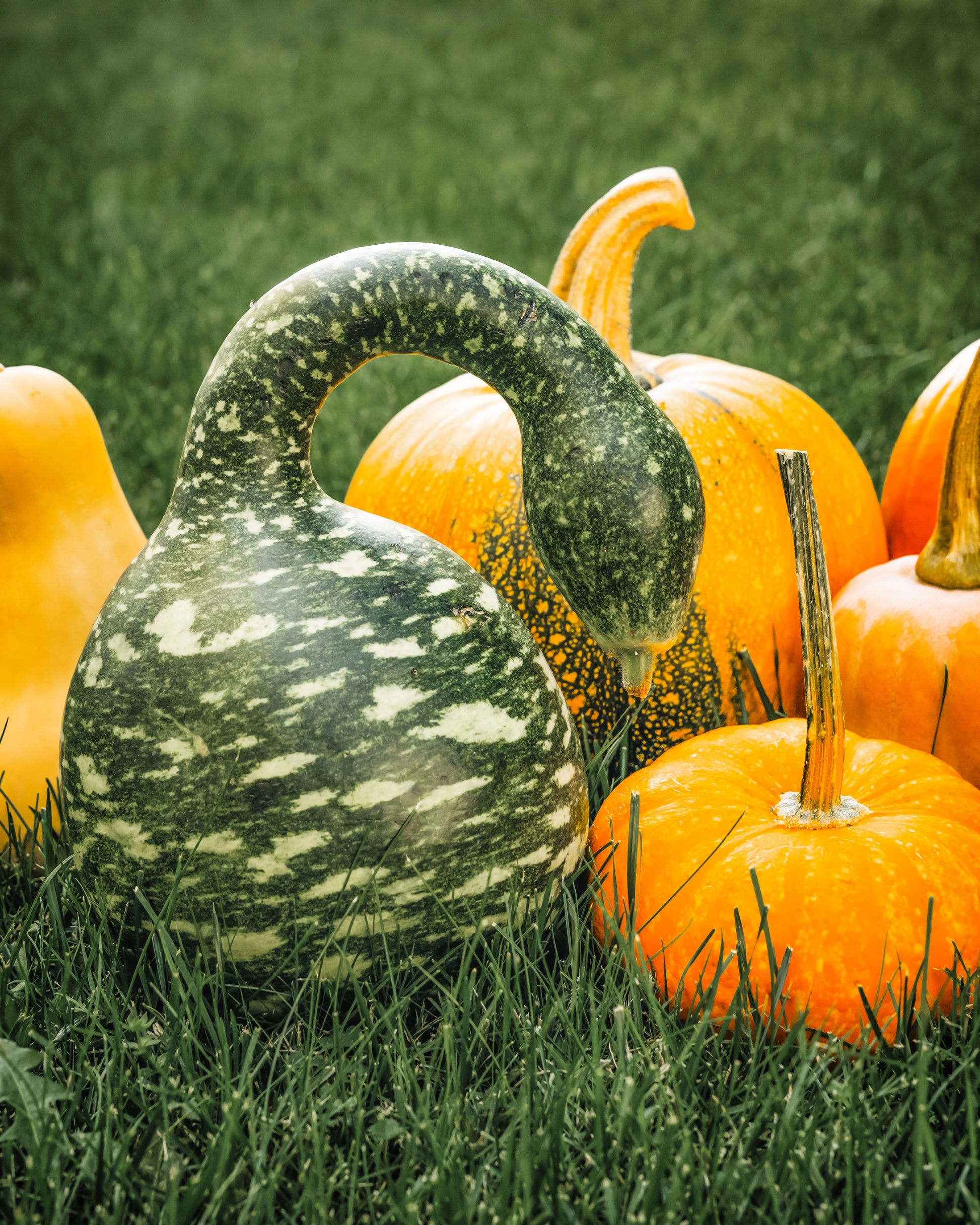 COLOR: Green gourds with lighter colored spots