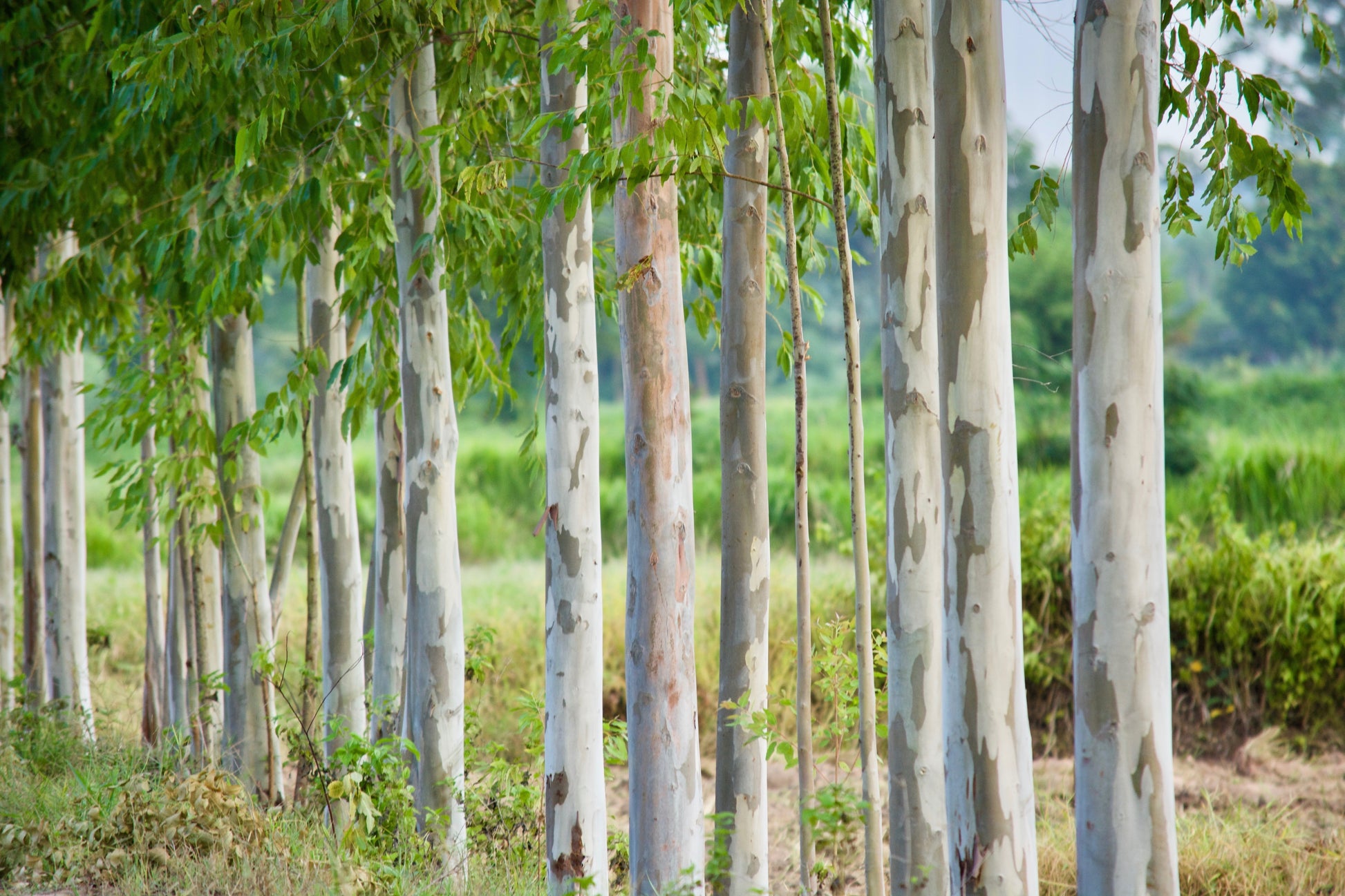 OTHER: The Tasmanian Blue Gum is one of the world’s largest and fastest growing trees. They can grow up to 1’ a month, 50’ in 7 years, or 175’ in 24 years. There are also reports of trees that were over 200’ feet tall. This Gum has evergreen leaves with a wonderful Eucalyptus fragrance and is completely pest and disease free. The many lovely flowers attract bees & butterflies, and over 100 species of birds use these Blue Gums. Squirrels and other small animals enjoy eating the seeds as well. They can tolerate salty coastal conditions, any type of soil, and dryness. As the name suggests, this tree is an Australian (Tasmanian) native. they were introduced to the USA in 1853 where they were grown for fuel (lumber). They also make such a good windbreak that thousands of miles of California coast were lined with these trees.